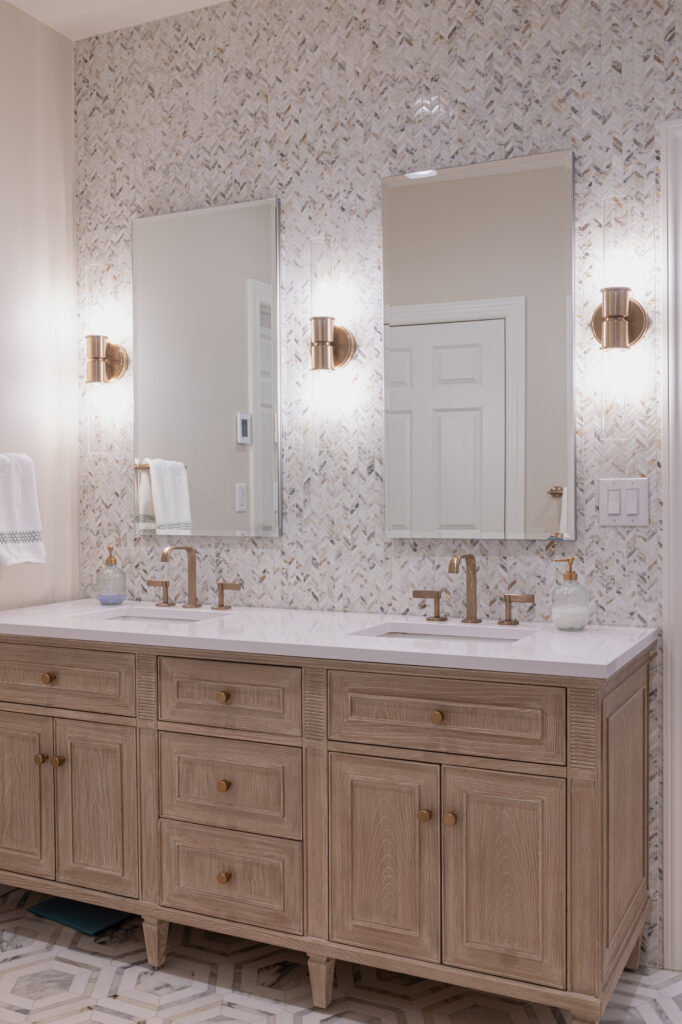 When unknowns come up in renovation, as they always do, the designer will work alongside the contractor to find solutions that keep the integrity of the design top of mind, without involving you directly. For example, when the design plan calls for a recessed flushed mirrored medicine cabinet and sheetrock comes down to reveal that there is a heating duct right where the mirrors should be that prevents them from being recessed. Most contractors would just suggest not having them be recessed, but the designer would opt to build out the wall so that your design plan stays true.